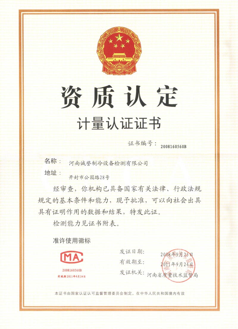 河南誠(chéng)譽(yù)制冷設(shè)備檢測(cè)有限公司是1986年成立的省級(jí)制冷產(chǎn)品質(zhì)量檢驗(yàn)測(cè)試機(jī)構(gòu)。1999年取得計(jì)量認(rèn)證合格證,2008年再次通過(guò)計(jì)量認(rèn)證評(píng)審。