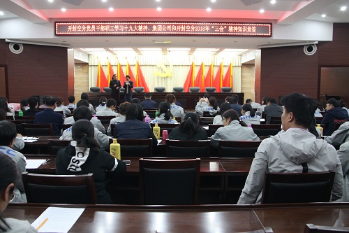 公司消息 10月25日下午,公司在大會議室舉行了黨員干部職工學習十九大精神、集團公司及公司2018年“三會”精神知識競答活動。公司黨委書記、董事長曾祥志,黨委副書記、紀委書記曹小毛及相關單位負責人、各基層分會答題選手共90余人,來到了活動現(xiàn)場。