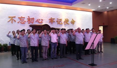 在宣誓廳,由公司黨委書記、董事長曾祥志領(lǐng)誓,全體黨員整齊列隊(duì),舉起右拳、面對(duì)黨旗,重溫了入黨誓詞,鏗鏘有力的誓言響徹宣誓大廳。