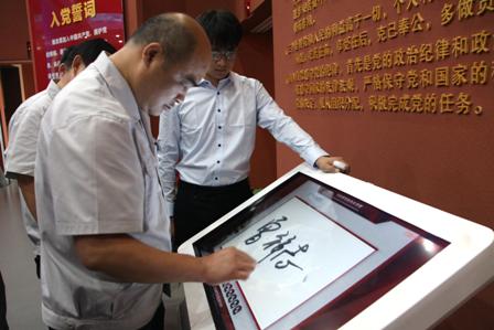 宣誓完畢,每位黨員在黨旗的映襯下,在《共產(chǎn)黨員承諾書》上莊嚴(yán)簽名。