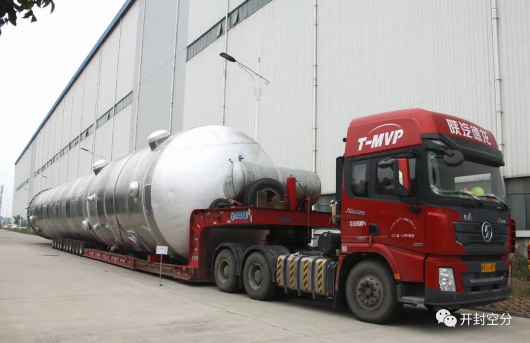 據(jù)悉,該項(xiàng)目下塔(含主冷凝蒸發(fā)器)重量約100噸,尺寸為31米×4.5米×4.7米,屬超大型設(shè)備運(yùn)輸,由于發(fā)貨時(shí)間緊急,項(xiàng)目管理部及時(shí)組織運(yùn)輸車輛,在空分設(shè)備廠及搬運(yùn)隊(duì)的積極配合下圓滿完成了此次發(fā)貨任務(wù)。